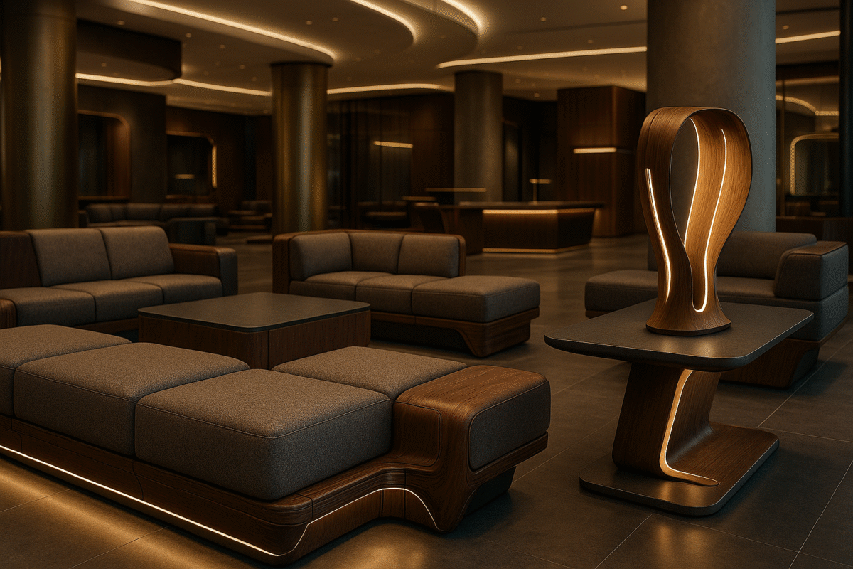 The next generation of contract furniture will be defined by intelligence — not only technological but design intelligence: furniture that anticipates wear, supports sustainability, and communicates brand ethos through material honesty.